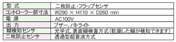 封筒のフラップ糊の有無検知と二枚検知のセンサです